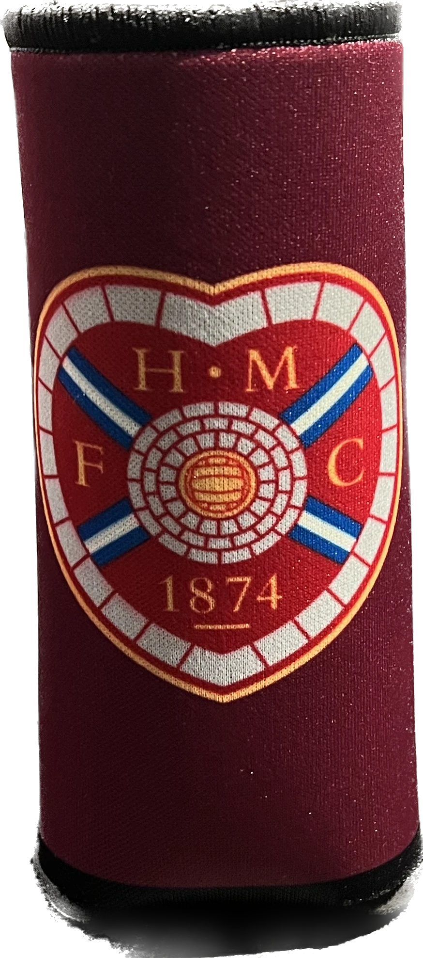 Keep your can cold this summer with our Maroon Crested can cooler.