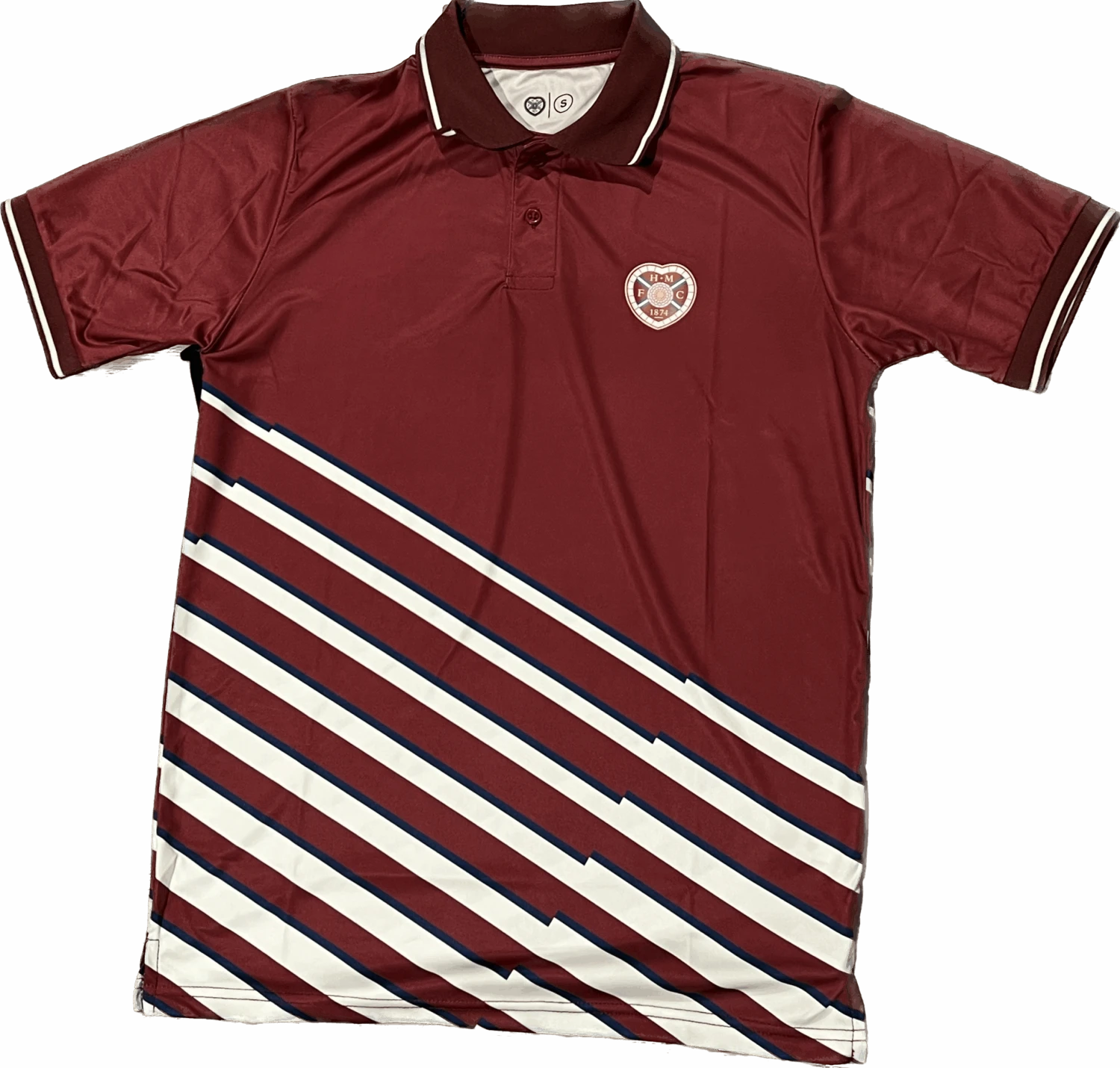 Maroon golf polo with black and white diagonal design.